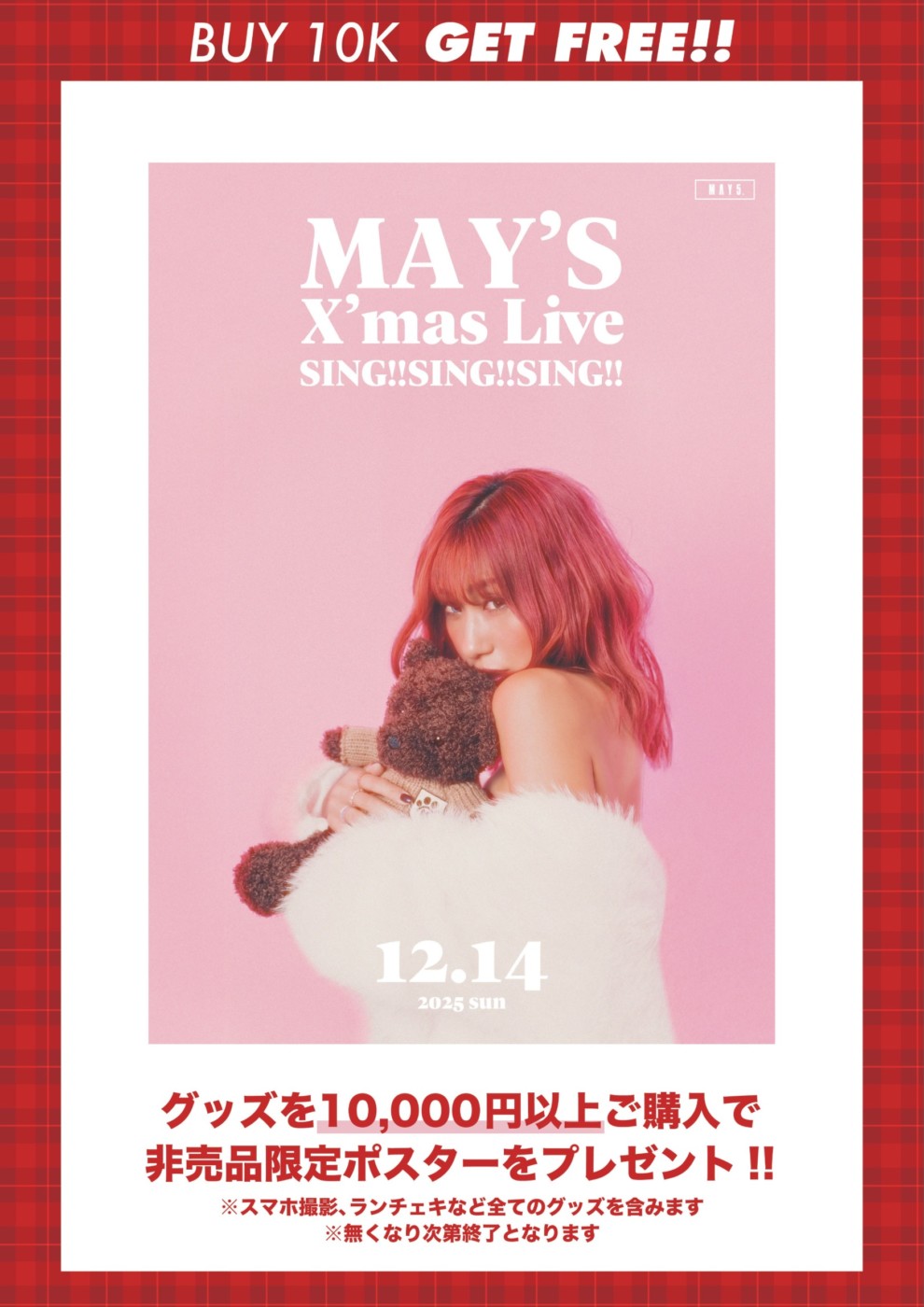 MAY’S X’mas Special Live “SING!! SING!! SING!! 2025”、会場物販と購入特典のご案内。